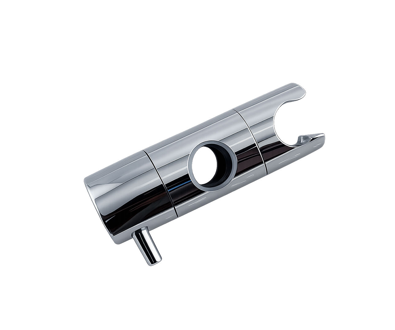 Verchroomde schuifhouder voor handdouches, geschikt voor standaard douchestangen. Eenvoudig verstelbaar en duurzaam.
