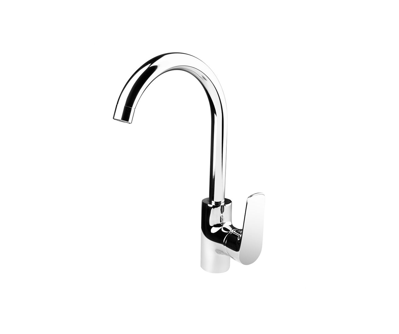 Staande keukenkraan met hoge uitloop en eengreepsbediening. Geschikt voor dagelijks intensief gebruik.