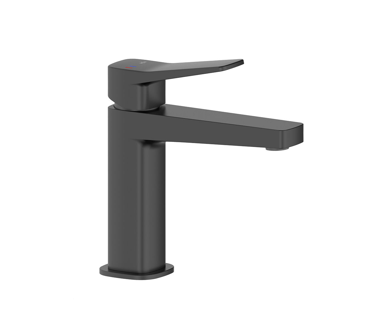 Zwarte wastafelmengkraan met click-clack afvoer en eengreepsbediening. Strak design voor eigentijdse badkamers.