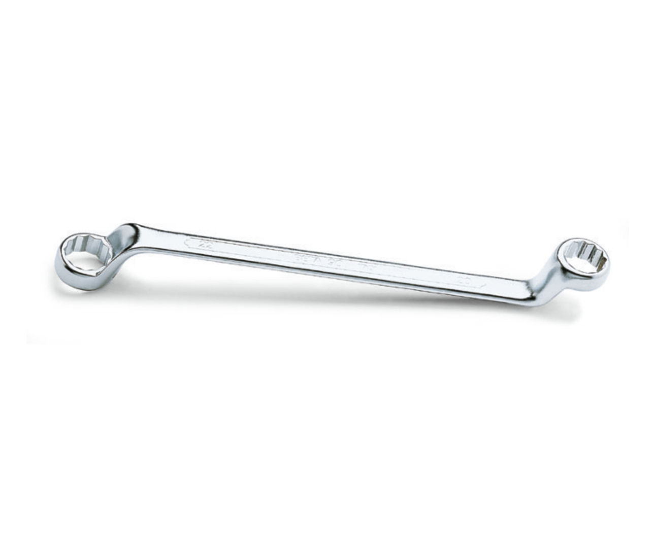 Met een ringsleutel zijn bouten en moeren eenvoudig vast en los te draaien. Bij de diep gebogen ringsleutel staat de ring onder een hoek van 75°. De ringsleutel is twaalfkantig en heeft hierdoor snel grip. Bij deze dubbele ringsleutel staat de ring (buitendiameter 33,2 mm) 31 mm onder de greep en is geschikt voor 19 en 22 mm.