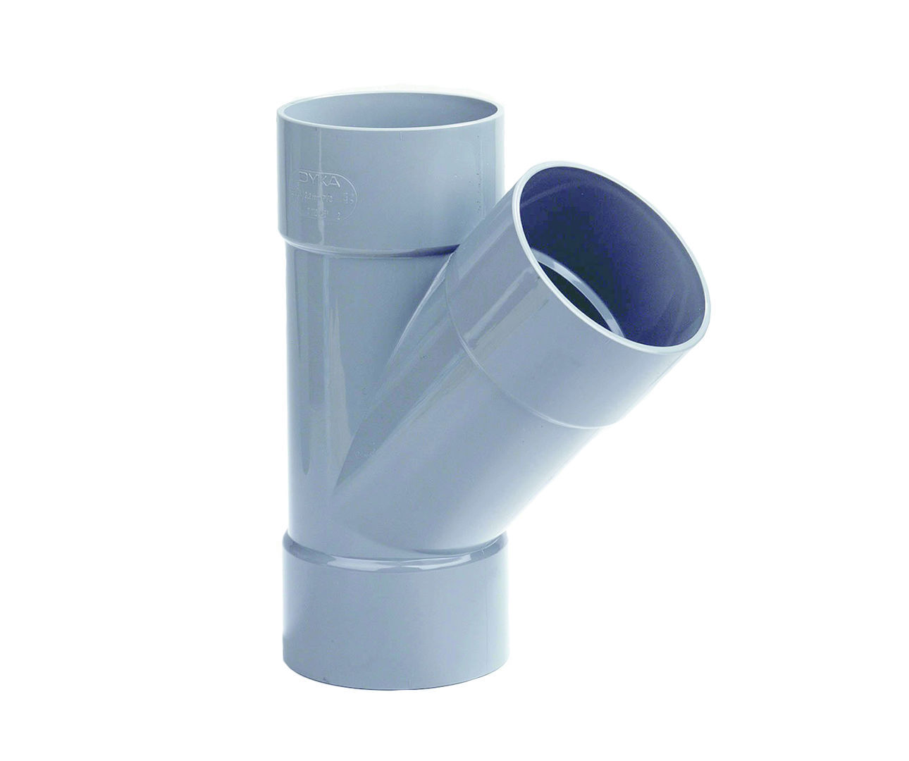 DYKA PVC T-stuk 32mm 3x lijmmof 45° grijs