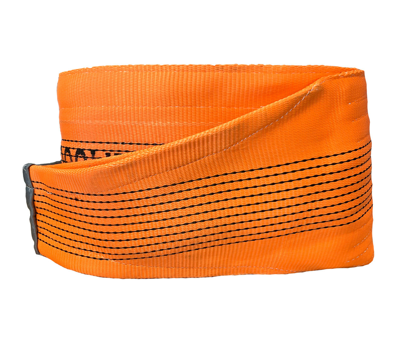 De hijsband is geschikt om lasten veilig te verplaatsen. De oranje hijsband kan tot tien ton hebben. Deze band is vijf meter lang, 120 mm breed en heeft twee hijsogen type ES: enkelzijdig gevouwen.