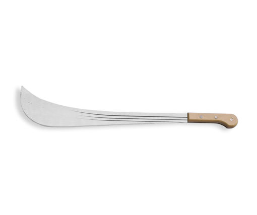 Deze houwer heeft de kenmerkende grote gekrulde punt aan het lemmet. De houwer heeft een houten handvat en is 559 mm lang.