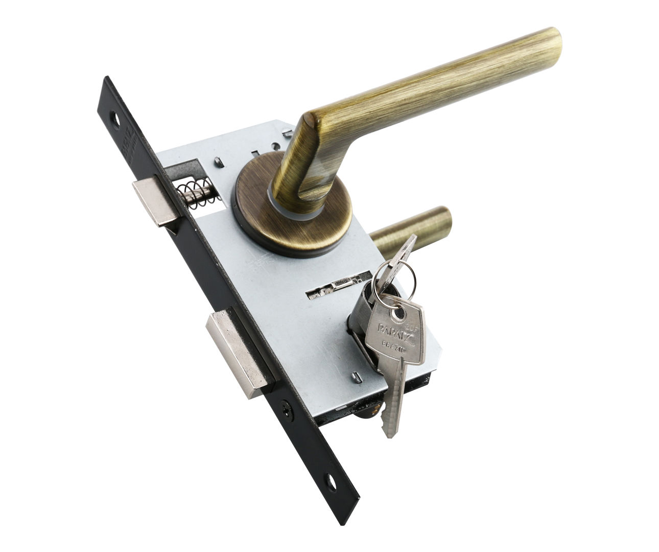 Deurbeslag is functioneel en heeft eigen uitstraling. Het is een insteekslot geschikt voor zowel woning als winkel en bedrijf. De vlakke iets verjongende deurkruk is van zamak. Het langwerpig schild is van RVS en messing. Deze uitvoering heeft een verchroomd, glanzend uiterlijk. Het beslag heeft een cilinderslot en een doornmaat van 40 mm.
