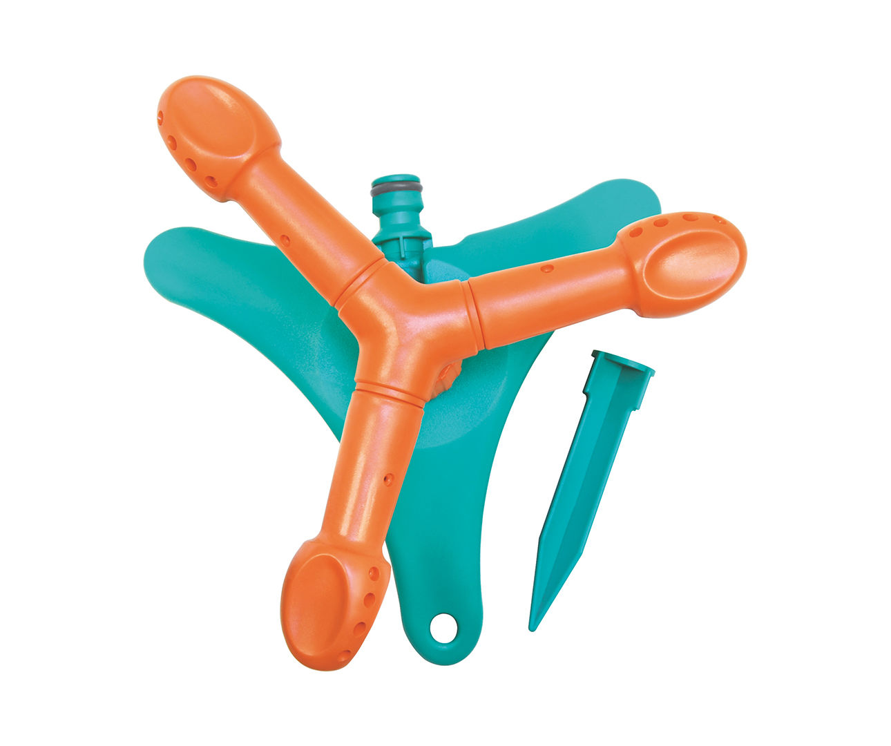 De drie-armige roterende sprinkler besproeit de tuin over een oppervlakte van 300 m². De sprinkler kan dankzij de kunststof pin op elke plek worden geplaatst en is aan te sluiten op het Tramontina irrigatiesysteem. Voor een optimaal resultaat staan de sproeikoppen onder een hoek van 45°.